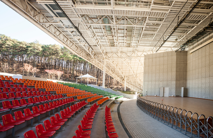 동탄1지구 중심부, 동탄복합문화센터 내에 자리한 전문 야외공연장 입니다. 607석 규모의 편안한 고정 좌석과 잔디밭을 활용한 개방형 공간이 조화를 이루어,