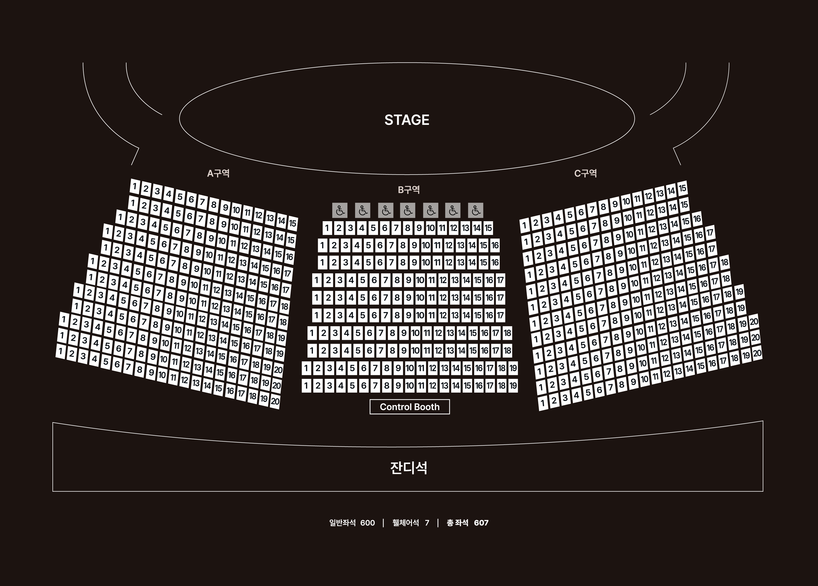 - 객석좌석수 607석 (휠체어석 7석 포함)
