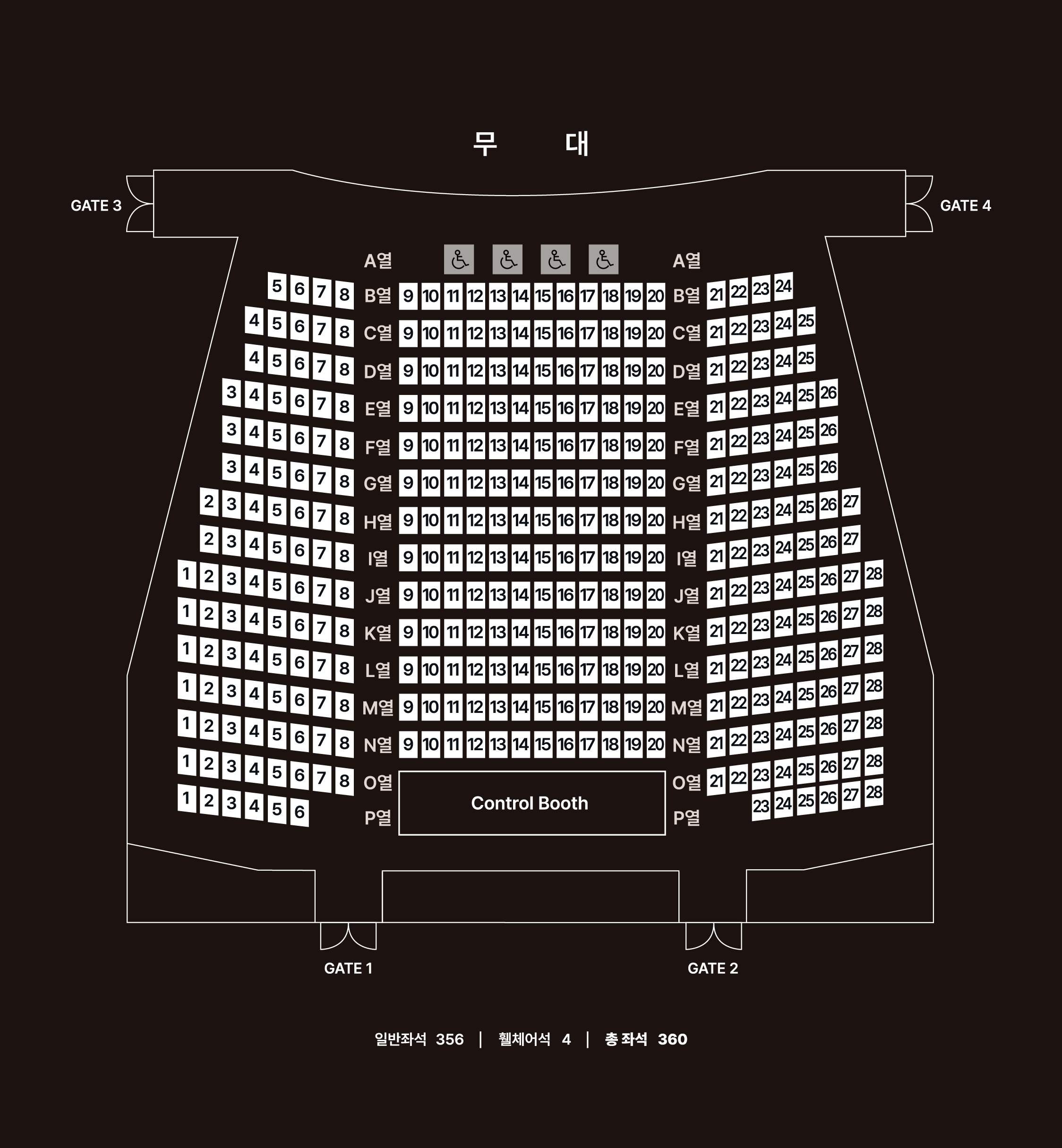 - 객석좌석수 360석 (휠체어석 4석 포함)
